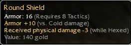 A1 | Q8/16 Round Shield (OS, gold, tactics) +10 Armor vs Cold -3 while Hexed
