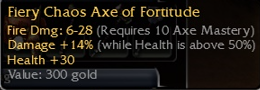 OS Fiery Chaos of Fortitude 10 axemastery/ 14%/50health +30health