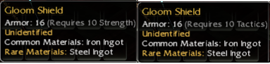 I can confirm that strength gloom shield from ToPK exists. Pretty sure I got some tactics req. Eternals are always strength ones in there.
