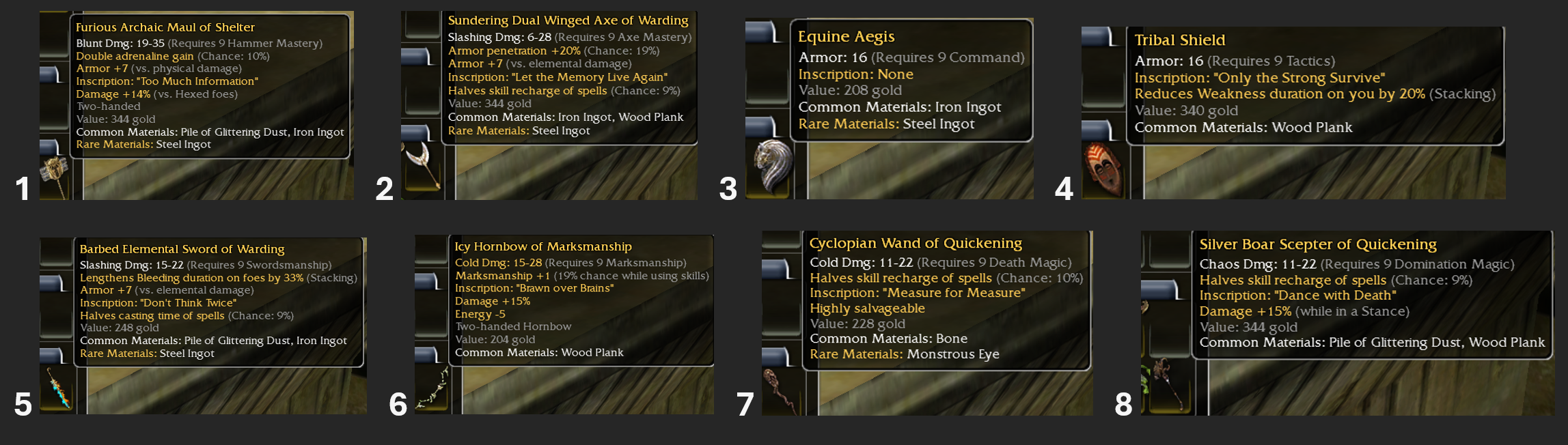 7: Cyclopian Wand (Death)8: Silver Boar Scepter (Dom)