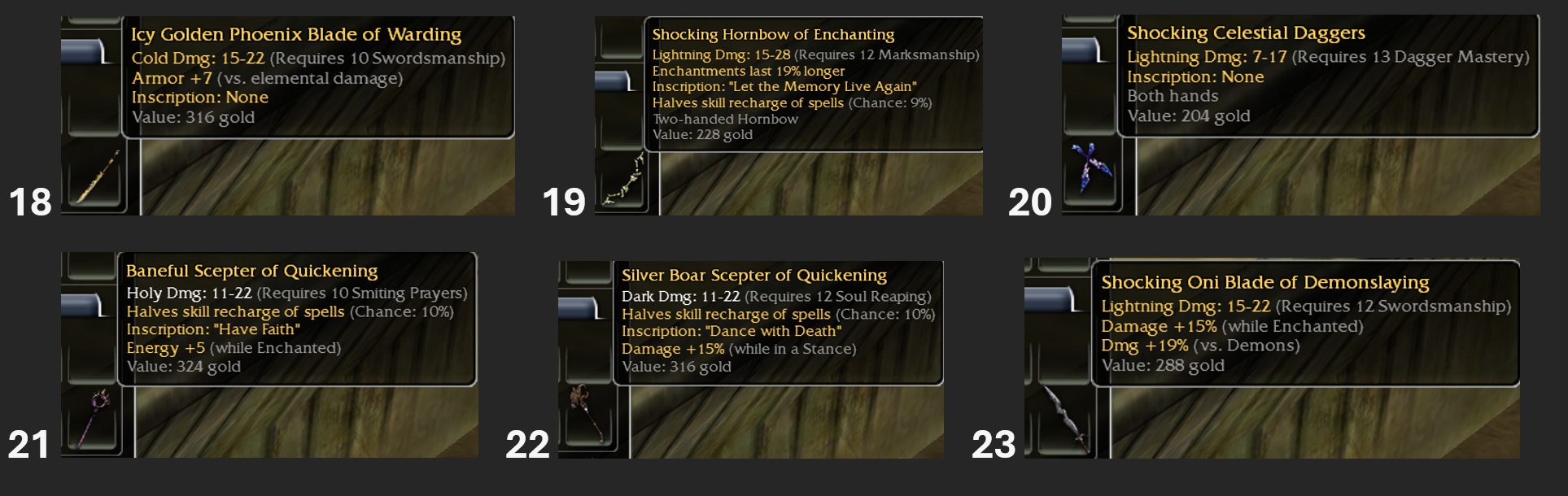 16: Stygian Spear17: Gorrel's Staff - C/O 20e (including 14)