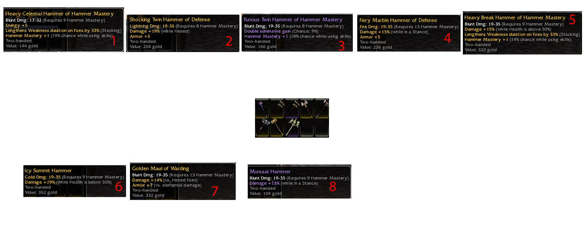 after a long break I'm finally back in GW1 after many years. I started playing again and found lots of old weapons from 2007–2008 on my account.