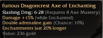 August 1, 2025 at 11:55 AM #1 Hi all, selling this q8 Dragoncrest Axe15^EnchDouble adrenaline gain20% longer enchants