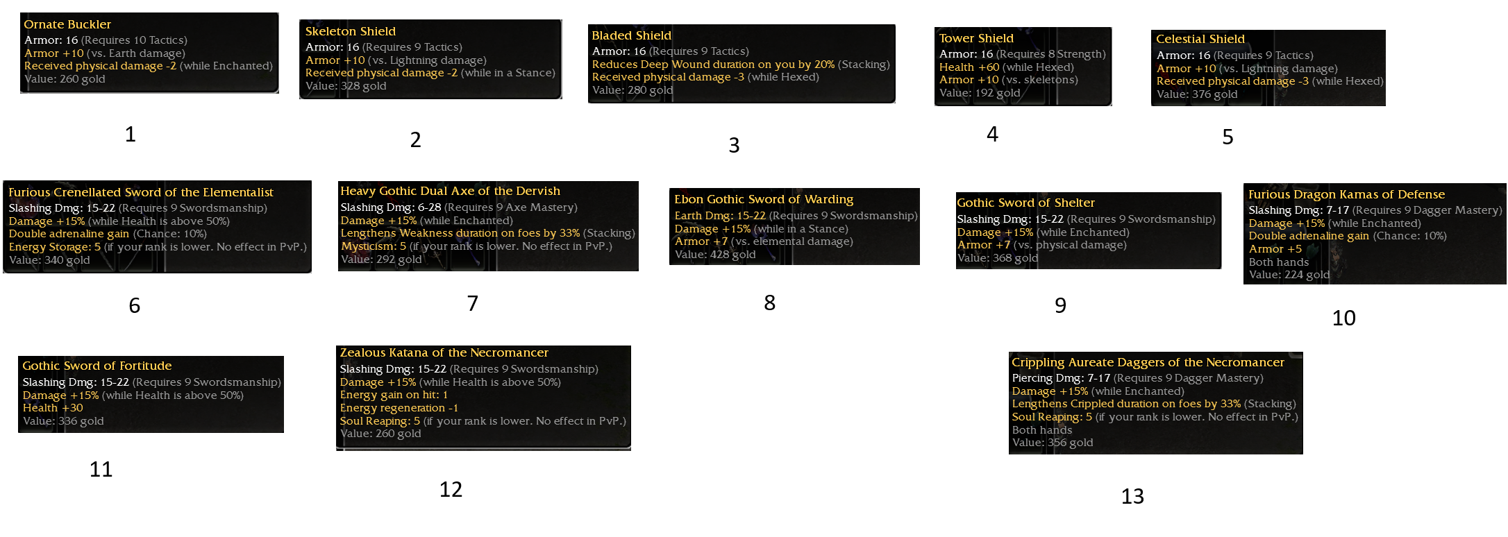 September 23, 2025 at 11:54 PM Changed the title of the thread from “Various OS items [shield, Kurzick, ...]” to “Various OS and some no OS items [shield, Faction NF inscrip, ...]”. -