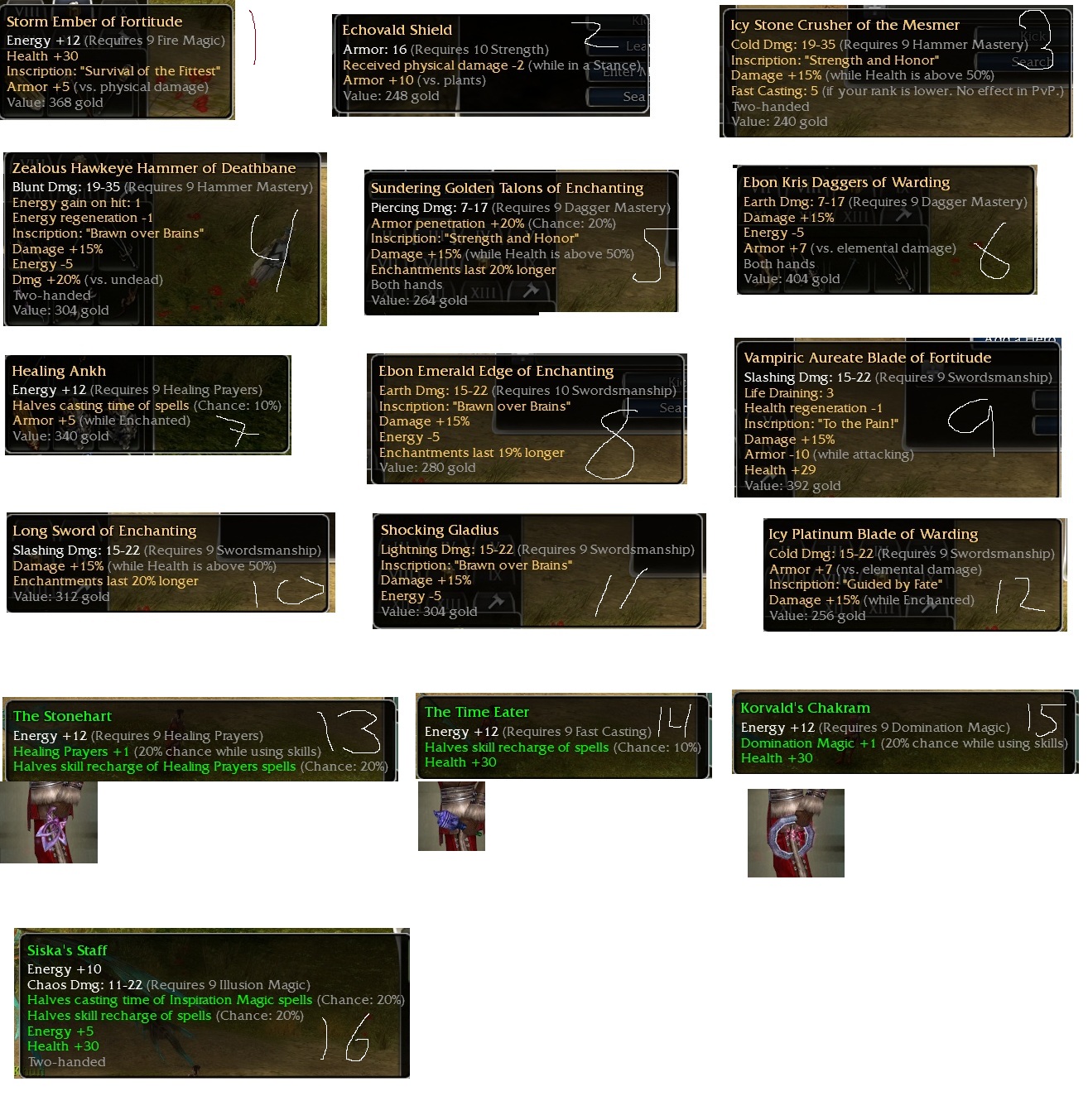 Thanks to anyone for their help in PCing these; looking at Kama chat can only do so much sometimes. Some of these have interesting mods, so I thought they might be useful for niche farmers?