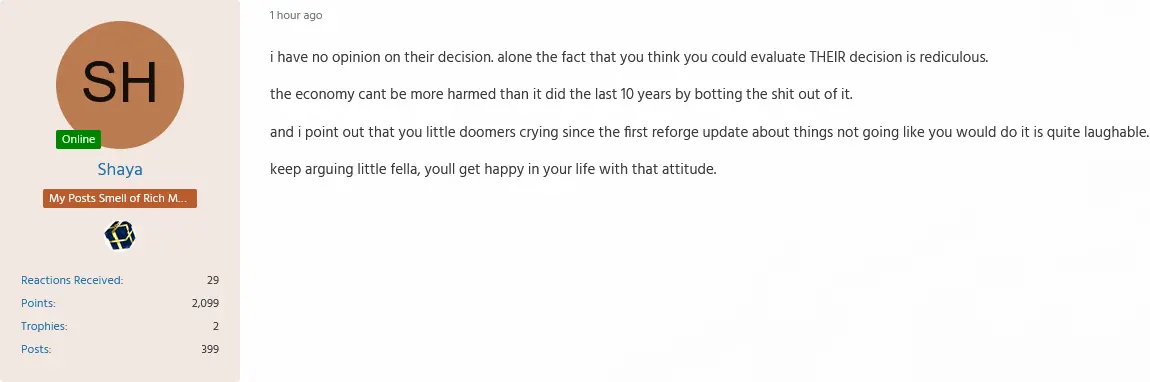 We don't crying, we analyze and share differing opinions and perspectives on the game. Besides, as you so aptly point out, your opinion of us doesn't matter, we can easily do without it. However, if you have insightful opinions about the game, we're always interested.