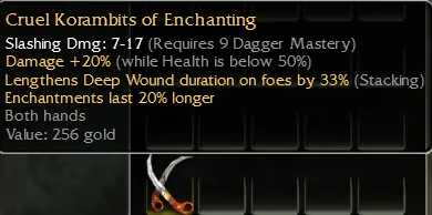 Cruel korambits of enchanting Q9 OS dmg +20% under 50%