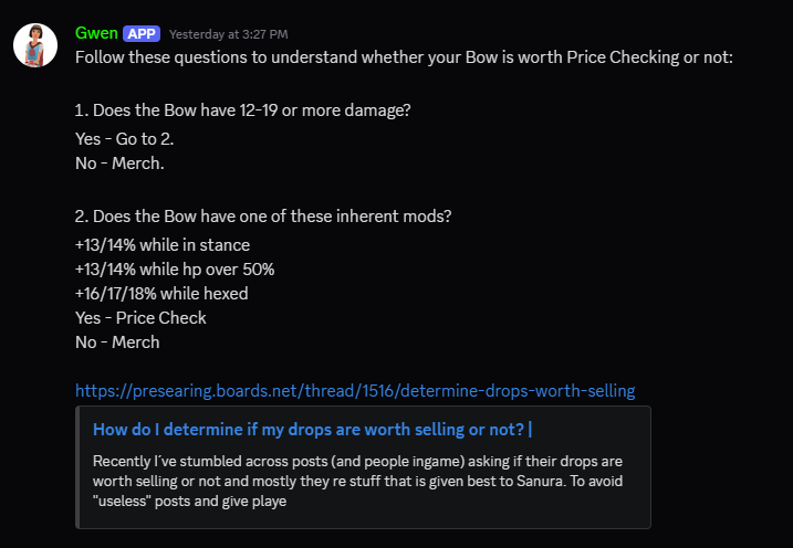 In Pre, just wondering if a purple bow I picked up is worth trying to trade to players or just sell to the merc.
