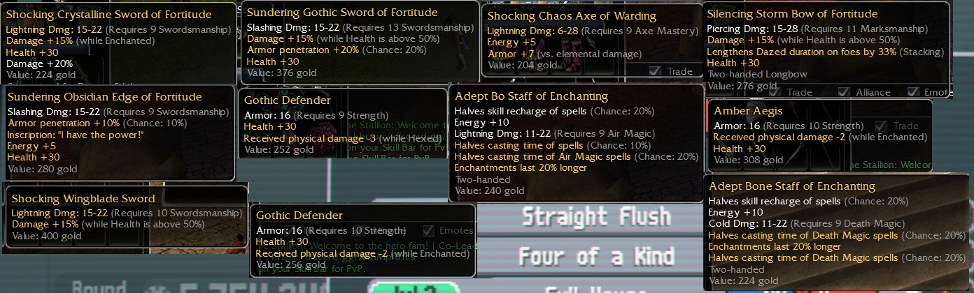 YES, the crystalline I got dropped ages ago and is customized for my warrior, so for that one I'm just curious of what it would be worth. I'd love if you took your time to write a price check. Some of these I will probably list here for sale later.