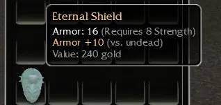 Selling Non-inscribable R8 Strength Eternal Shield, Armor +10 (vs Undead)