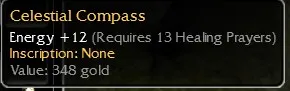 Celestial Compass's: R13 Earth, R12 Fire, R12 Prot, R13 Healing