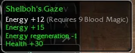 Shelboh's Gaze Energy +12, R9 Blood, Energy +15 Energy regeneration -1, Health +30
