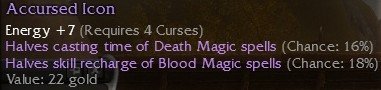 q8 14^50 (purp) Dusk Blade, Flame Artifact +8E, +8Armor vs Charr, +23 HP (Pre), dual Charr Sields (Pre), dual Offhands (Pre), max dmg Short Bow (Pre)