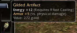 035Gilded ArtifactFocusRareOSq9Fast CastingArmor +5 (vs. physical damage)272