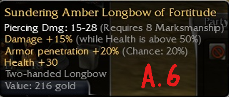A6: OS Amber Longbow Q8 +15^50 Gifted