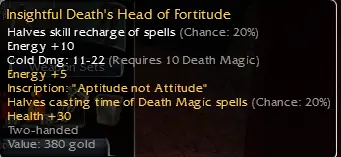1. Insightful Death's Head of Fortitude (req10 death magic, inscript)