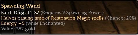 I dropped a Spawning Wand (claw) OS Q9 Spawning 20%HCT Resto +5e^enchanted