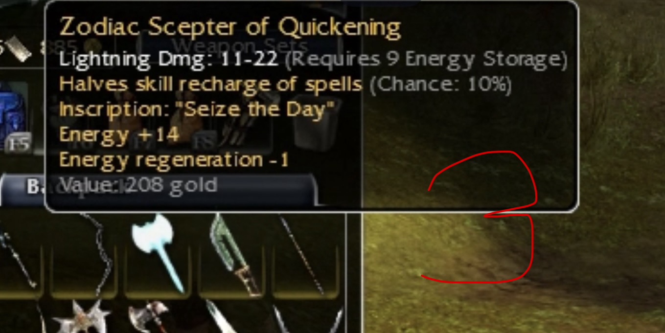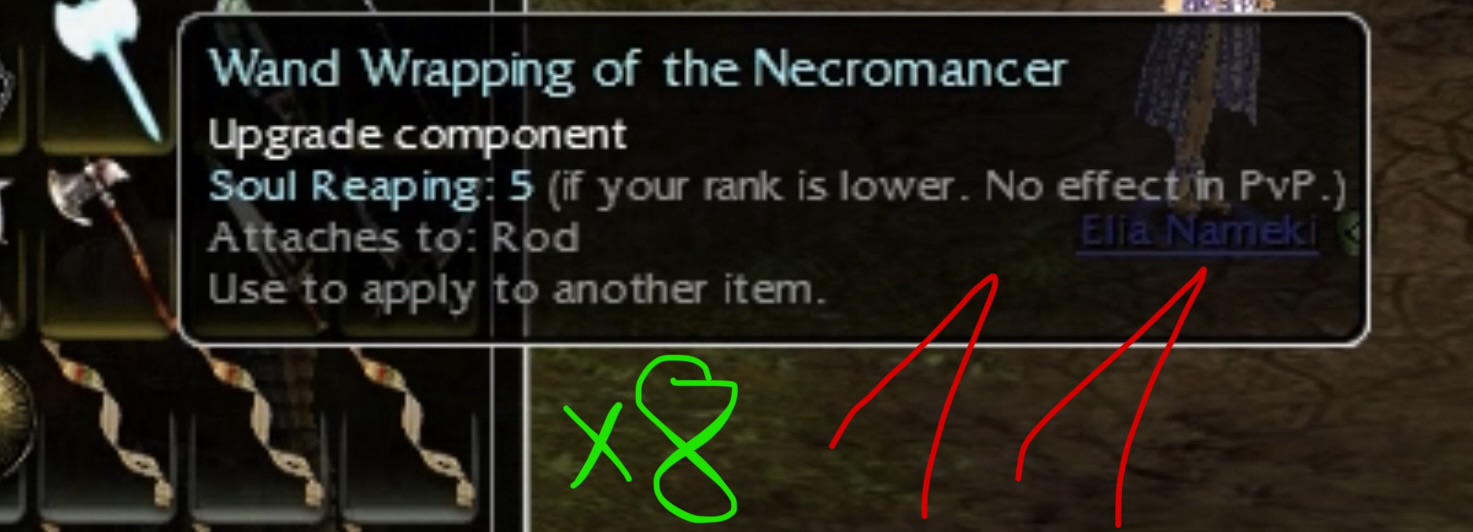 OS Q9 Chaos Axe / 2x Q8 blue insc shields / Q8 white starfish focus / misc Q9 insc gold weapons / wand wrapping of the necromancer