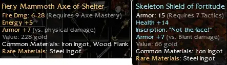 q9 os mammoth axe q7 15 armor blue skeleton shield inscribable