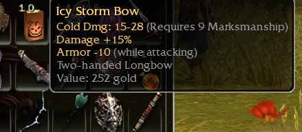 Selling an Old School Icy Storm Bow. Also up for sale is a beautiful piece of nostalgia. This is a Q8 Swordsmanship Long Sword with Max Damage (15-22).