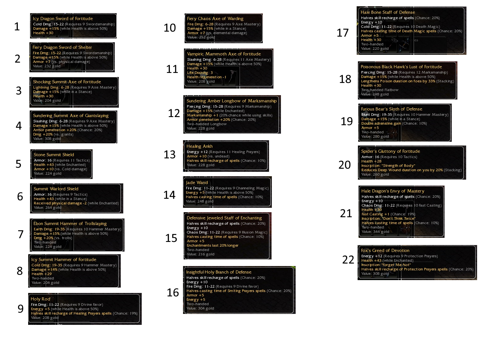 17. Bone Staff, Q10 death magic, halves casting time death magic 20%
