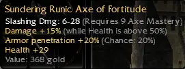 Leight February 21, 2026 at 4:07 PM Changed the title of the thread from “WTS OS Sundering runic axe q9 15/50, armor pene +20%, hp +29” to “WTS OS Sundering runic axe q9 15/50, armor pene +20%, hp +29 [closed]”.