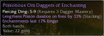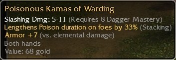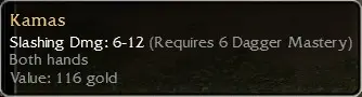 | Daggers | If I ever see another Kamas again, I'll @#$@%#... Almost a third of the drops (whites/blues) were with minimum damage of 1-3 but otherwise, 2-3 or 2-4. I may have to move to another map to see if I can get higher, but as I began to test Amber against the hidden Lesser Oni, I was fortunate to get a keeper: