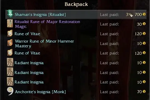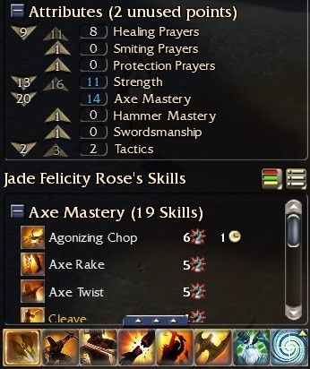 Seeing that I have unused character slots, I decided to create a warrior in Cantha as well as a monk in pre-searing, and may also start a mesmer or elementalist in Istan. The idea is to follow the stat range provided in Red Fireball's: