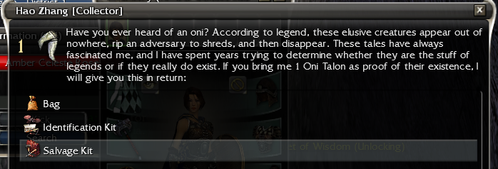 Or, if you are not saving up to exchange for Gifts of the Traveler from Nicholas the Traveler who will only receive them on the 1st of November 2027 at Saoshang Trail, you can exchange Mantid Pincers for Identification and Salvage Kits from Marik Kuri at Sunqua Vale: