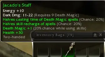 Jacado's Staff (q9 death 20/+1^20/+30 hp)