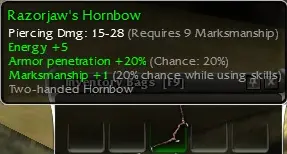 Razorjaw's Hornbow (q9 marksmanship 20^20, +5 energy, +1^20)