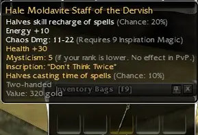 Moldavite Staff (q9 inspiration, +30 hp hale head and 5 mysticism wrap of the dervish)