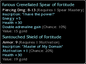 | Tall Shield | - | - | Need | - | - | Blue | - | - |