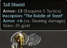 | Tall Shield | - | - | Need | - | - | Blue | - | - |