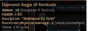 Q9 Diamond Aegis (Tactics) hp +30 - phys dam -2 while enchanted