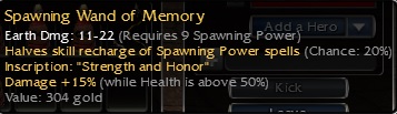 Q9 Spawning wand - Halves skill on spawn power spell 20% chance - 15^50