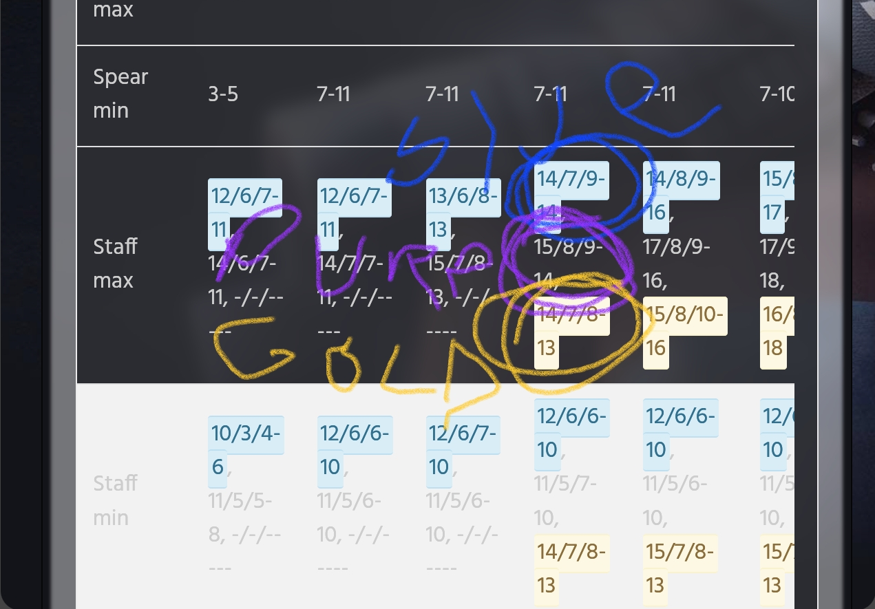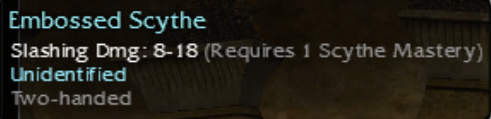 Gentleman Xander aha. I did list the damage range that had the min min damage (8-31 in that case for min min damage 8) and the range for the min max damage recorded (9-30 for a min max damage of 30 on there) I do this in the same manner as for the max stats: I list the range for the max min damage as well as the range for the max max damage, because on scythe and axe they are not always identical. I see it might be a bit misleading... but shame on the gw devs - I am 100% sure we will have to keep two ranges listed since a 10-40 will never happen on a q8 or a 10-41 on q9. idk, if we should leave the mixed ones (min max or max min damage) out but I feel that at least on the 10-xx scythes and 7-xx axes there is interest...