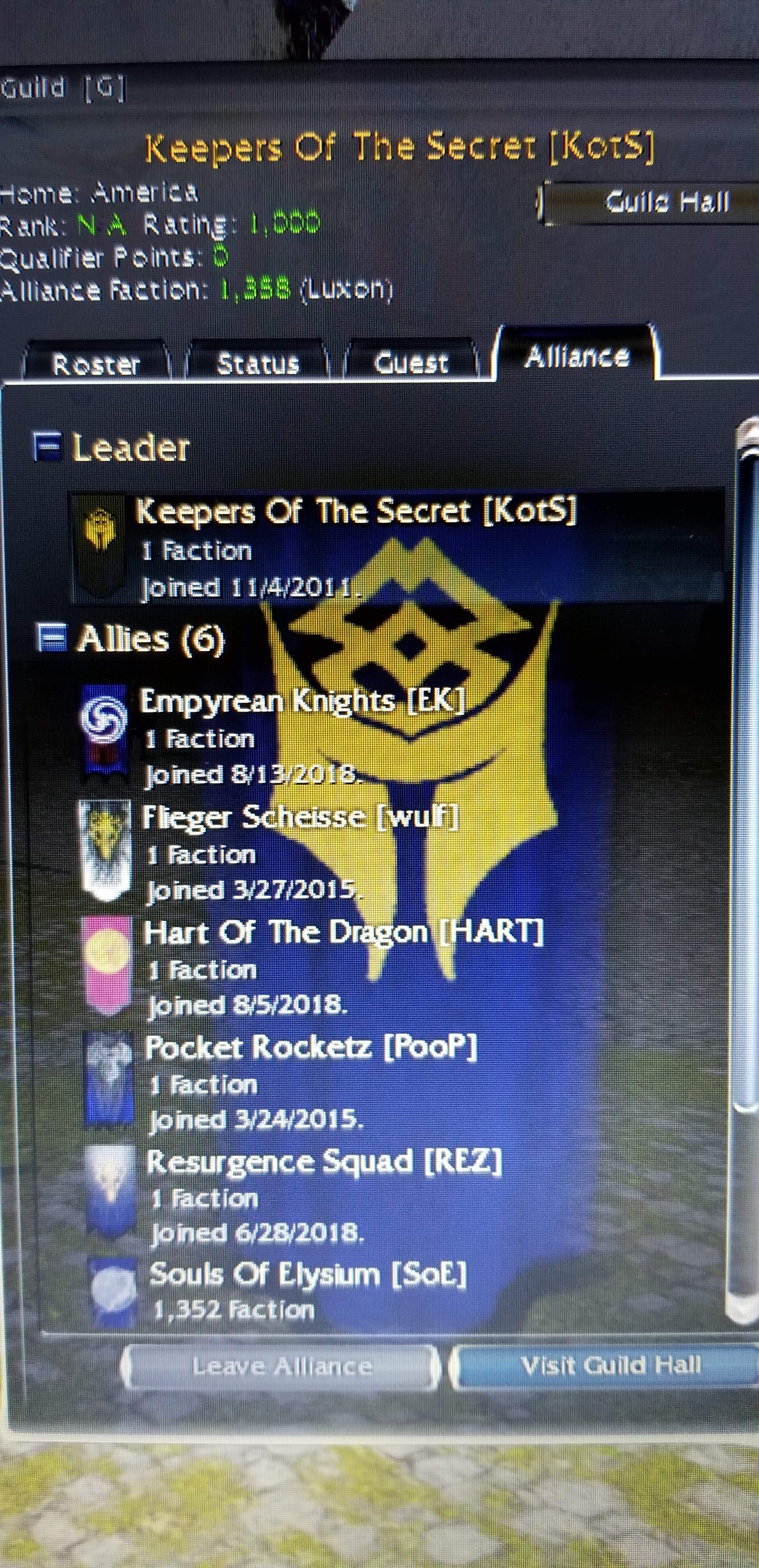 Howdy folks, these are the official guilds in the kurzick & Luxon Alliances for Guild Wars Legacy.