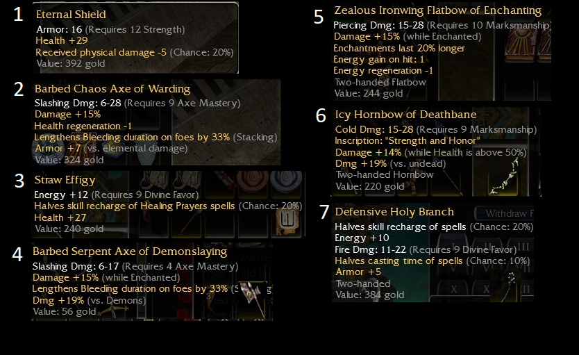 os weap (eternal shield, +15/-1 chaos axe, ...) + q9 mursaat bow