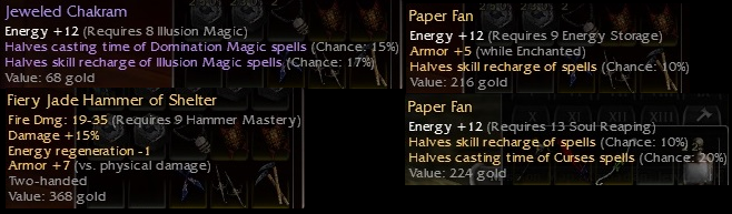 Mesmer: b/o - 50 30e/ea - Stone Chakram (x1) - Jeweled Chakram (x1) - Wooden Chakram (x1) - Inscribed Chakram (x1)