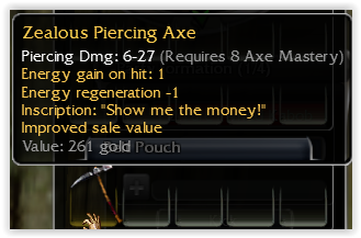 Max damage for inscribable axe in q8, I could see a collector wanting it for 10-20e. It is really impossible to give an accurate price and I would just list it for sale and see where it goes.