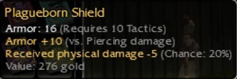 The plagueborn shields have collectors, however the 5/20 is not a wanted mod with 10vs mods. You may be able to get 20-30e on the high side unless someone really wants it.