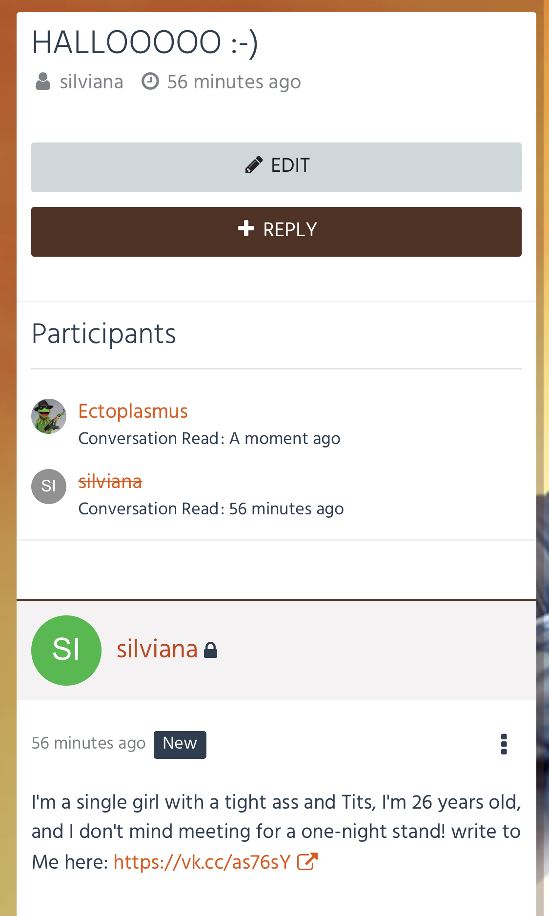 I'm lonely and bored.. I haven't had a boyfriend in a long time.. Can you keep me company? My profile with photos can be found here - > Link obviously removed