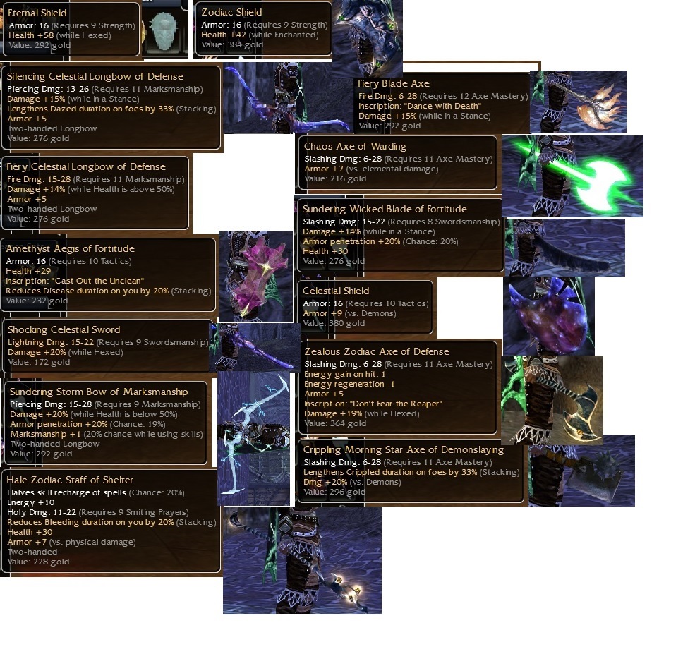5e each on q9 celestial sword 20hex and q9 storm bow 20under