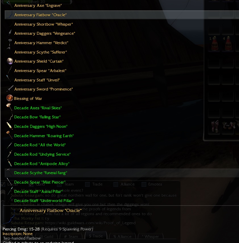 The Ancient Anniversary Weaponsmith’s inventory has been reinforced with the Anniversary set, containing weapons with familiar looks but previously unavailable attribute requirements.