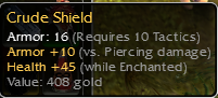 WTS Q10 Tatic Crude Shield +10 vs Piercing +45hp w/e