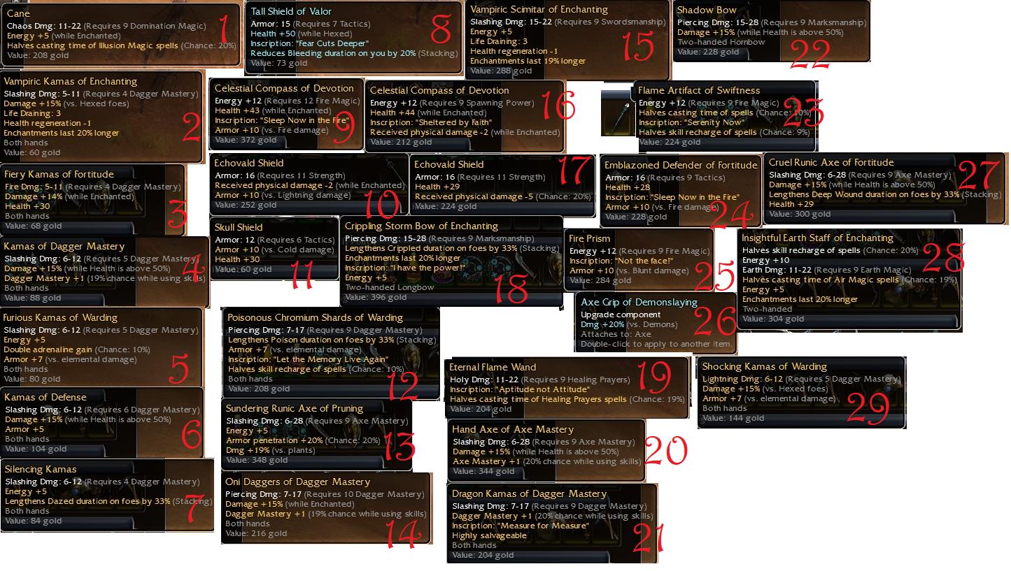 Gold Items Q9, lowreq daggers and and a lot of other stuff