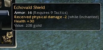 SOLD OS Echovald Shield +30HP -2We (Q9Tac) SOLD