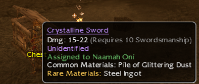 That's all it says. I have an identified version in my post here WTS Q10 Fiery Crystalline Sword of Warding