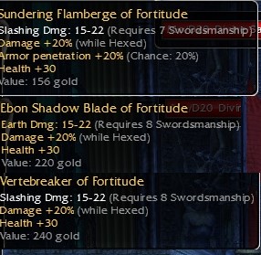 Every single gold max q8 sword I have dropped has been while hexed mod 19 or 20 lol. So I am going to just say that is the sword equivalent.